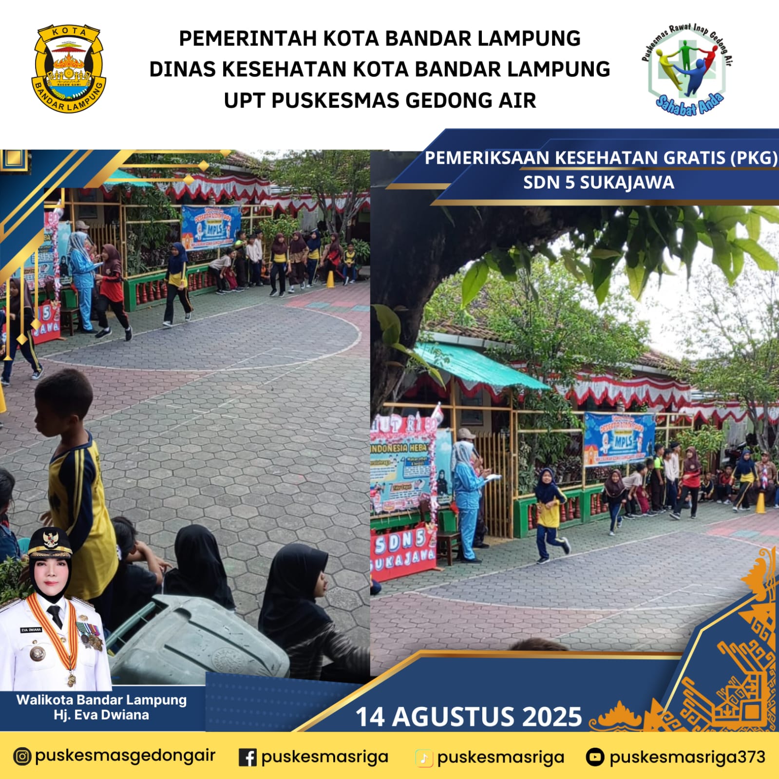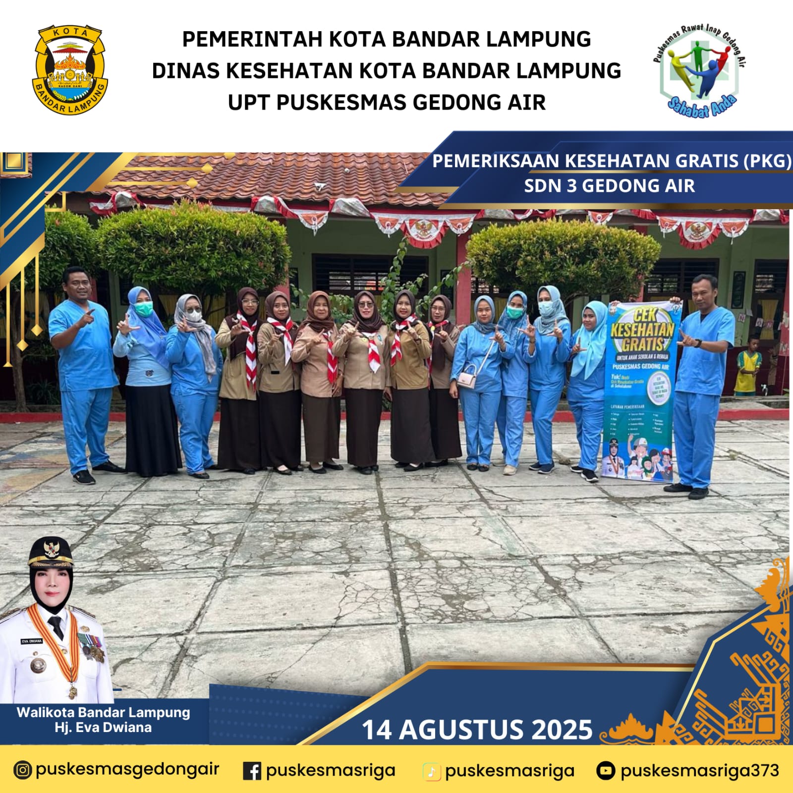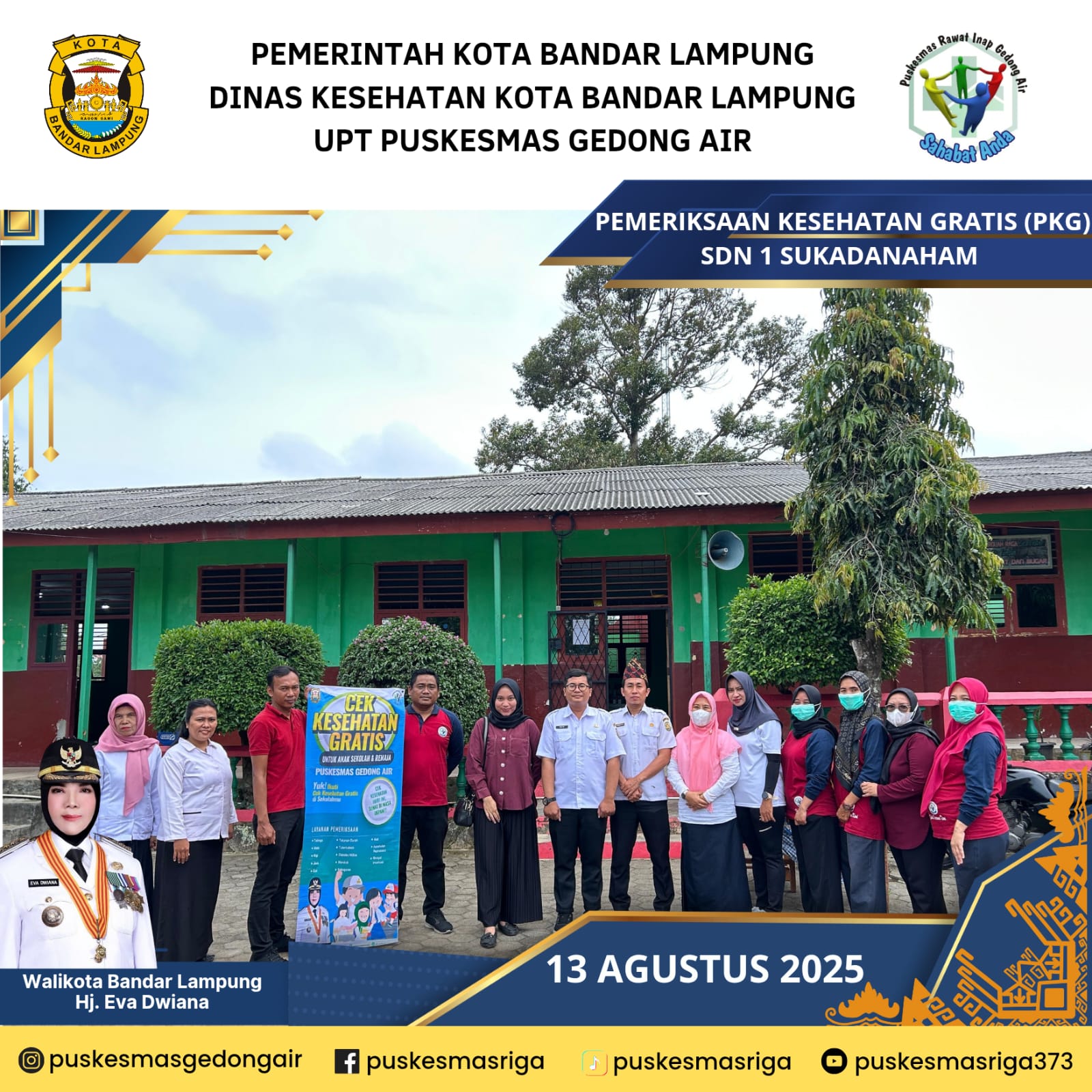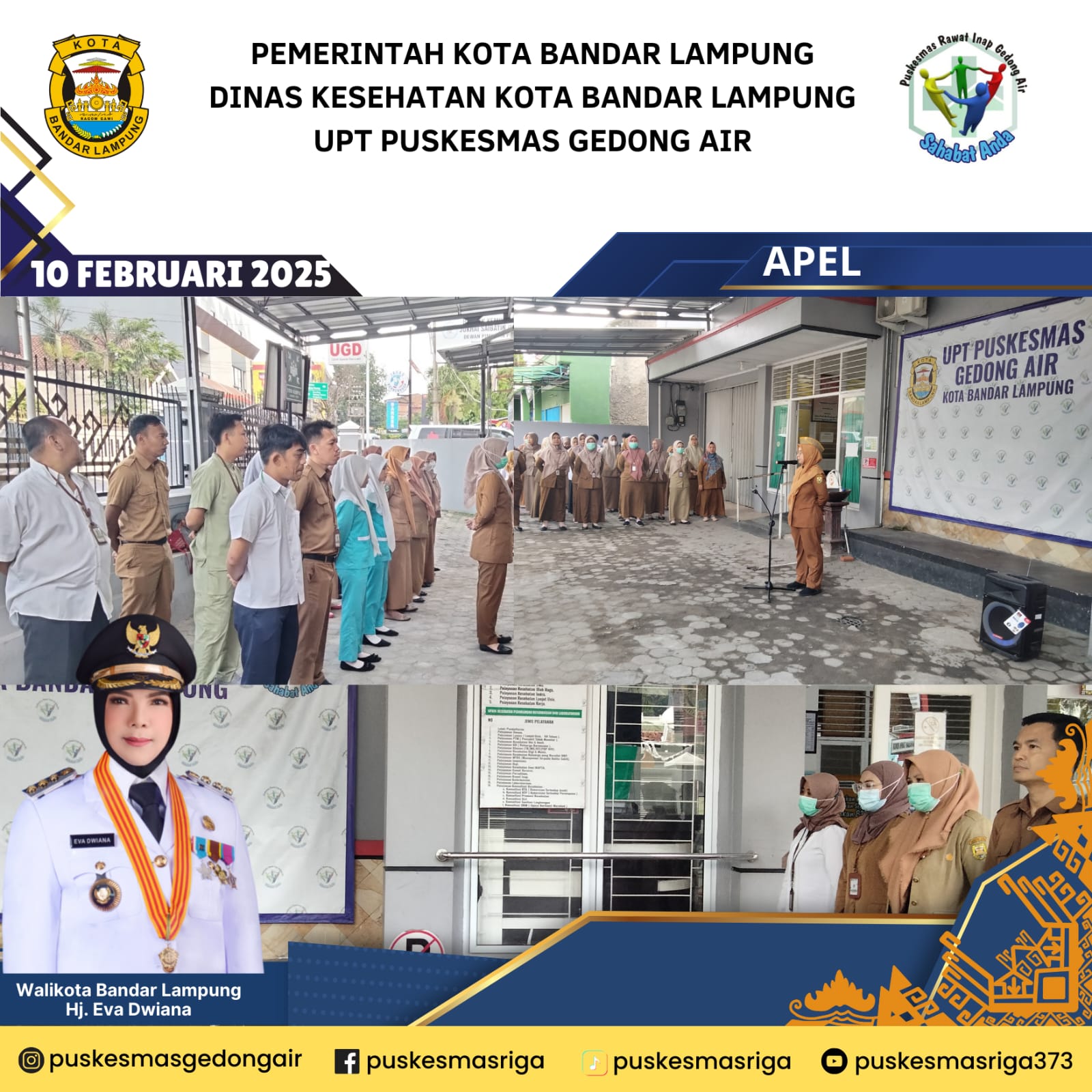 Puskesmas Rawat Inap Gedong Air merupakan salah satu UPT Dinas Kesehatan Kota Bandar Lampung, terletak di Jalan Sisingamangaraja No.3 Kelurahan Gedong Air Kec.Tanjung Karang Barat. Puskesmas Rawat Inap Gedong Air didirikan sebagai Puskesmas Rawat Jalan pada tanggal 18 Agustus 1970 dan penetapan Puskesmas Gedong Air sebagai UPT Puskesmas Rawat Inap pada tanggal 20 Juni 2008 dengandidasarkan pada Surat Keputusan Walikota Bandar Lampung. Berdasarkan Keputusan Walikota Bandar Lampung No.586/IV/HK/2012tentang Pemberlakuan Pola Pengelolaan Keuangan Unit Pelaksana Teknis PadaDinas Kesehatan Kota Bandar Lampung Sebagai Badan Layanan Umum Daerah, UPT Puskesmas Rawat Inap Gedong Air terhitung mulai tanggal 1 April 2012ditetapkan menjadi PPK BLUD bertahap dan pada tahun 2014 ditetapkan menjadi BLUD penuh dan pada tahun 2016 berdasarkan penilaian dari Komisi Akreditasi Fasilitas Kesehatan Tingkat Pertama, UPT Puskesmas Rawat Inap GedongAir diakui sebagai Fasilitas Kesehatan Tingkat Pertama yang telah memenuhi standardakreditasi dan dinyatakan Terakreditasi dengan Status Akreditasi PARIPURNA di Tahun 2024